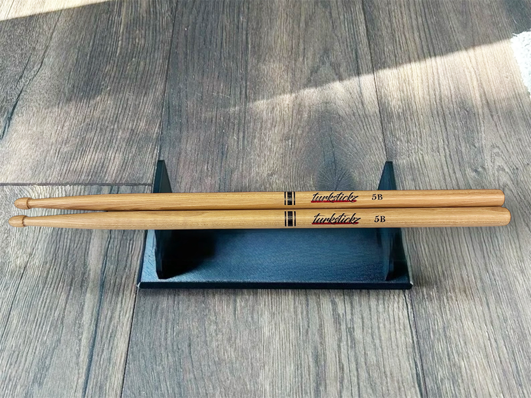 These sticks are turned from Select White Hickory. White hickory drumsticks are a popular type of drumstick made from the sapwood or outer portion of the hickory tree, which is lighter in color than the heartwood.  Known for a balanced feel—not too heavy or too light with good shock absorption, reducing stress on hands and wrists. Hickory is a dense and resilient wood, making these sticks durable and great for both practice and performance. The acorn tip produces an intense, rich cymbal sound and response.